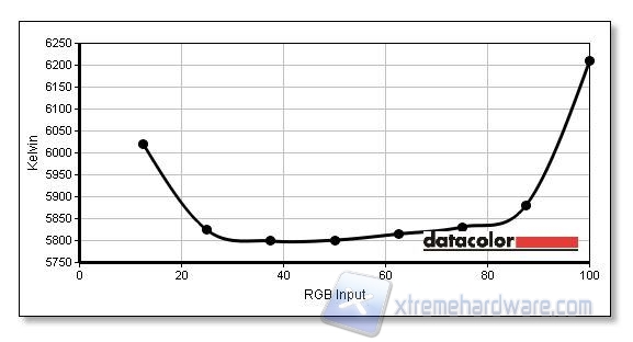 La luminosità del nero rimane un pochino alta e il contrasto ne risente. Ottima la copertura del gamut e buono l'andamento del gamma, ma la temperatura del bianco rimane un po' bassa.